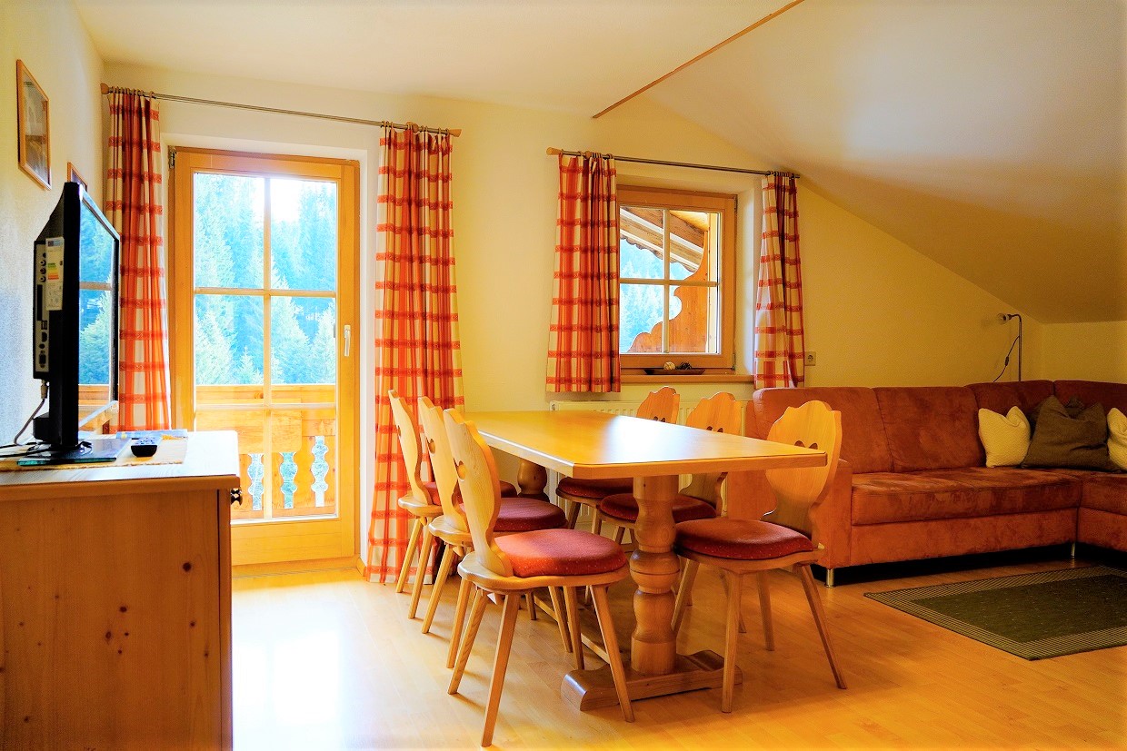 Die Ferienwohnung "Hösl" ist großzügig geschnitten und bietet einen Südbalkon mit herrlichem Ausblick auf die Alpbacher Berge.